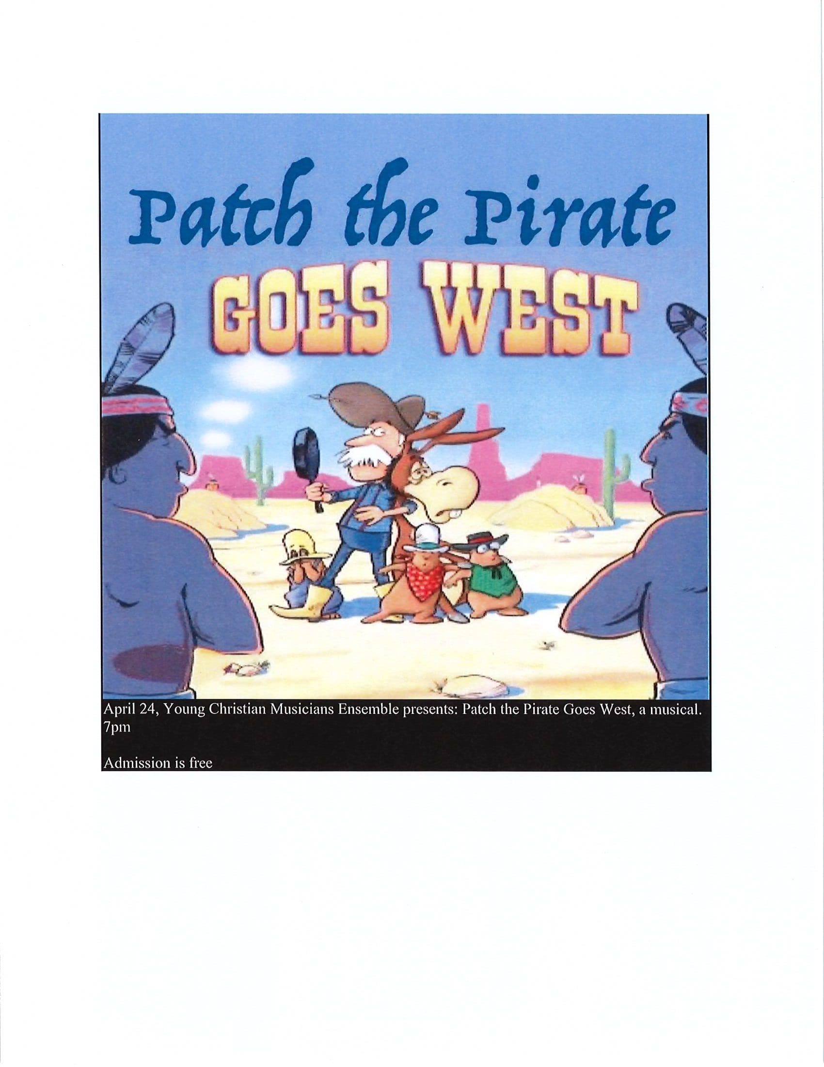 Patch the Pirate Goes West, a musical presented by Young Christian Musicians Ensemble at KOH